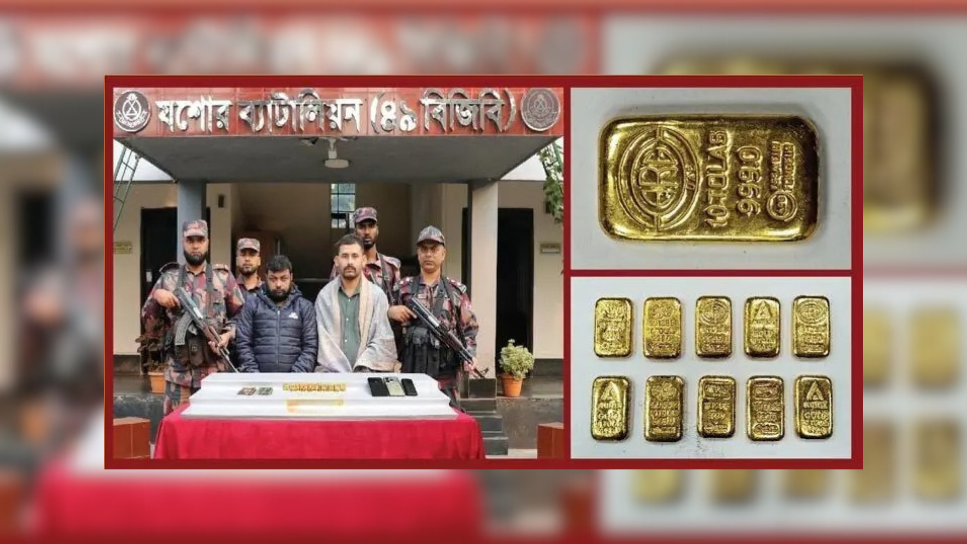 যশোরে ১০ স্বর্ণের বারসহ দুই পাচারকারী আটক