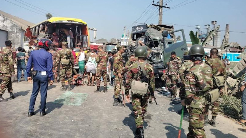 ঘটনার পর সেনাবাহিনী, পুলিশ ও ফায়ার সার্ভিসের সদস্যরা যৌথভাবে উদ্ধার কার্যক্রম পরিচালনা ও সড়কে সৃষ্ট যানজট নিরসনে ব্যবস্থা গ্রহণ করেন। বর্তমানে ওই সড়কে যান চলাচল স্বাভাবিক রয়েছে বলে জানিয়েছে পুলিশ।