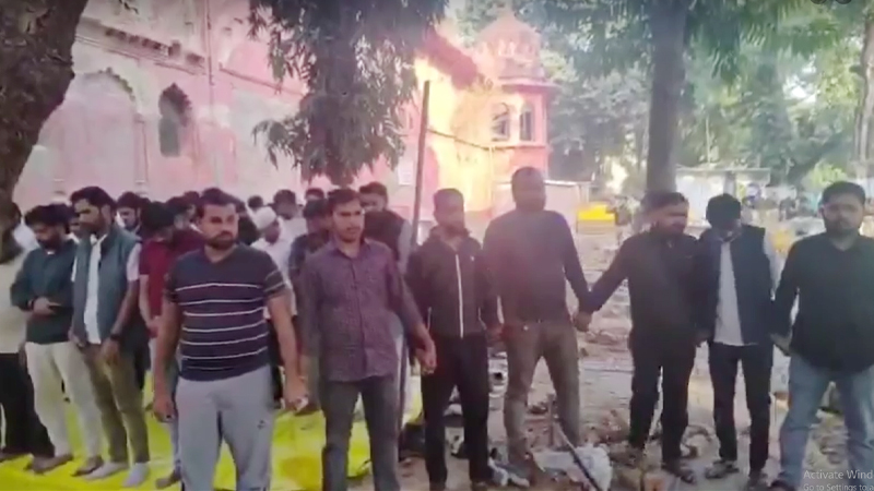 এরই ধারাবাহিকতায় রোববার (২২ ফেব্রুয়ারি) ক্ষুব্ধ শিক্ষার্থীরা ক্যাম্পাসের বাইরে বিশ্ববিদ্যালয় প্রশাসনের এমন সিদ্ধান্তের বিরুদ্ধে বিক্ষোভ জানায়। বিক্ষোভের মাঝেই মসজিদের বাইরে নামাজ আদায় করেন মুসলিম শিক্ষার্থীরা। কিন্তু এসময় পুলিশ প্রশাসন উপস্থিত থাকায় মসজিদের বাইরে নামাজ পড়তে বাধা দিতে পারে এমন আশঙ্কা থেকে হিন্দু শিক্ষার্থীরা তাদের মুসলিম সহপাঠীদের রক্ষায় মানব ঢাল হয়ে দাঁড়িয়ে যায়, যে দৃশ্য রীতিমতো ভাইরাল হয়ে ছড়িয়ে পড়ে দেশজুড়ে।
